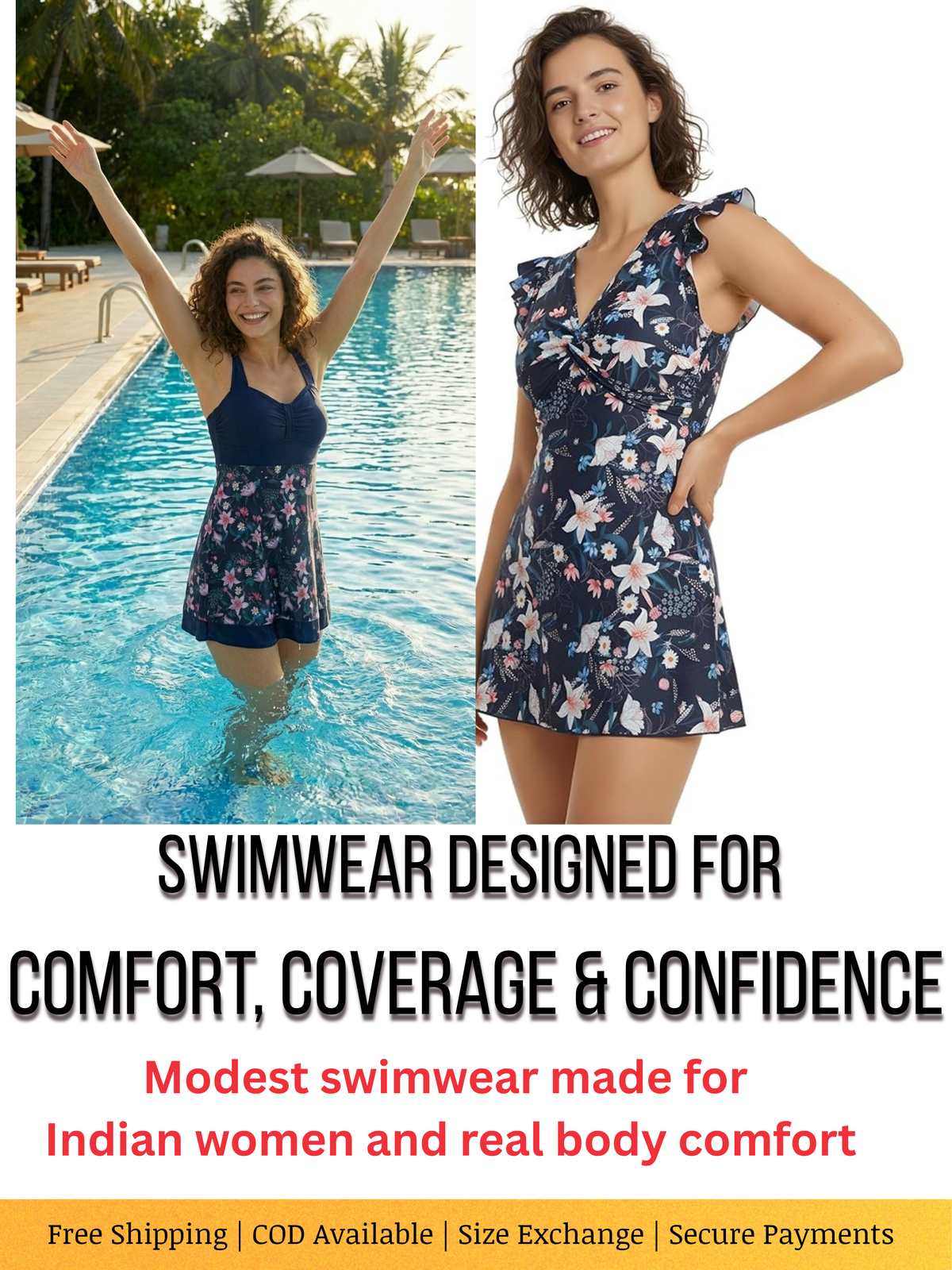 At MEGASKA, we believe every woman deserves swimwear that combines style, comfort, and modesty. Our collection is specially designed for Indian women who prefer elegant yet functional swimsuits. From swim dresses and one-piece swimsuits to burkinis and rash guard swimsuits, MEGASKA offers something for every swimming need.