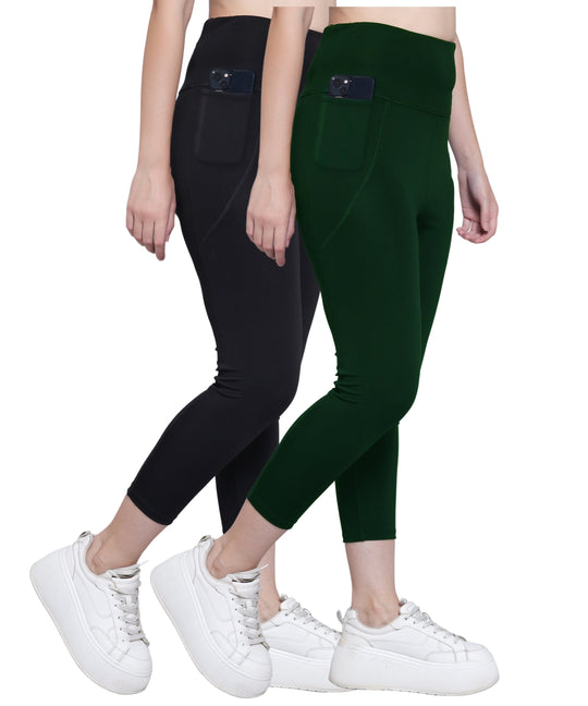 Dry Fit Active Gym Leggings with Pockets High Waisted Tummy Control For Yoga And Sports (Pack of 2)
