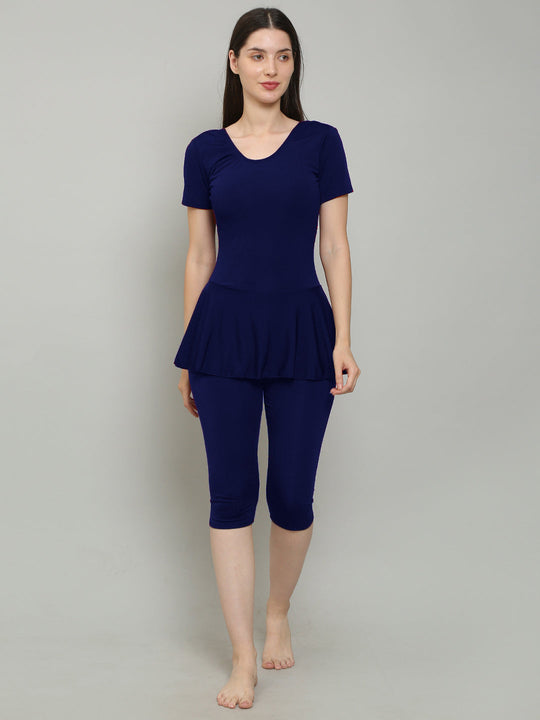 Block Color Lycra Knee Length Padded One Piece Swimming Costume