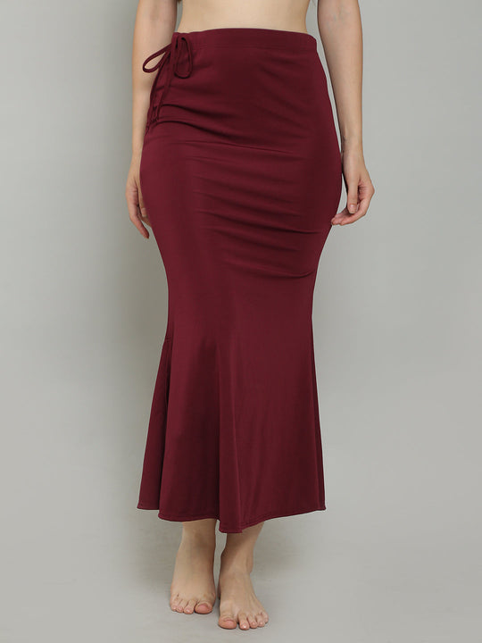 MEGASKA Women Lycra Seamless Fishcut Petticoat Skirt Saree Shapwear_Wine