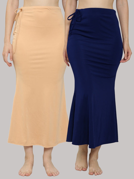 MEGASKA Women Lycra Seamless Fishcut Petticoat Skirt Saree Shapwear Combo (Pack of 2)_Beige_NavyBlue