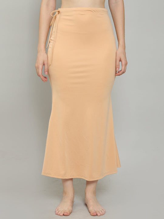 MEGASKA Women Lycra Seamless Fishcut Petticoat Skirt Saree Shapwear_Beige