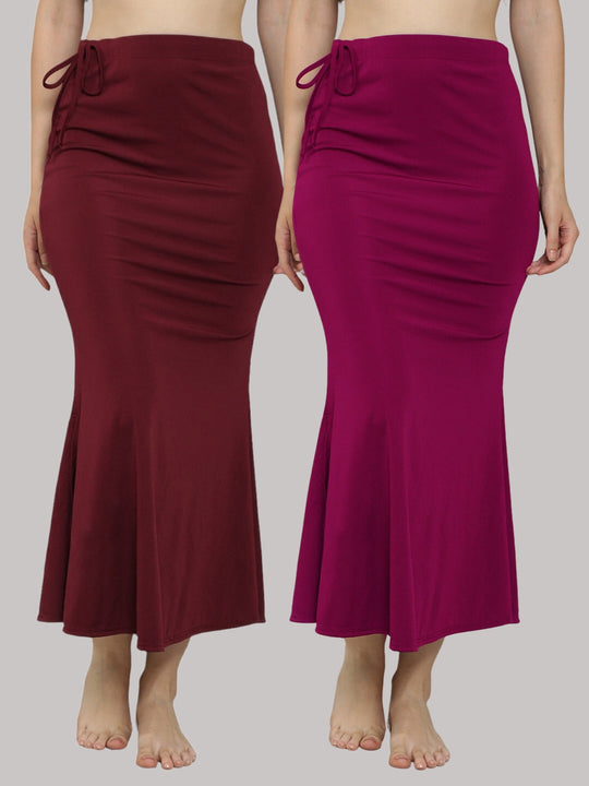 MEGASKA Women Lycra Seamless Fishcut Petticoat Skirt Saree Shapwear Combo (Pack of 2)_Wine_Magenta